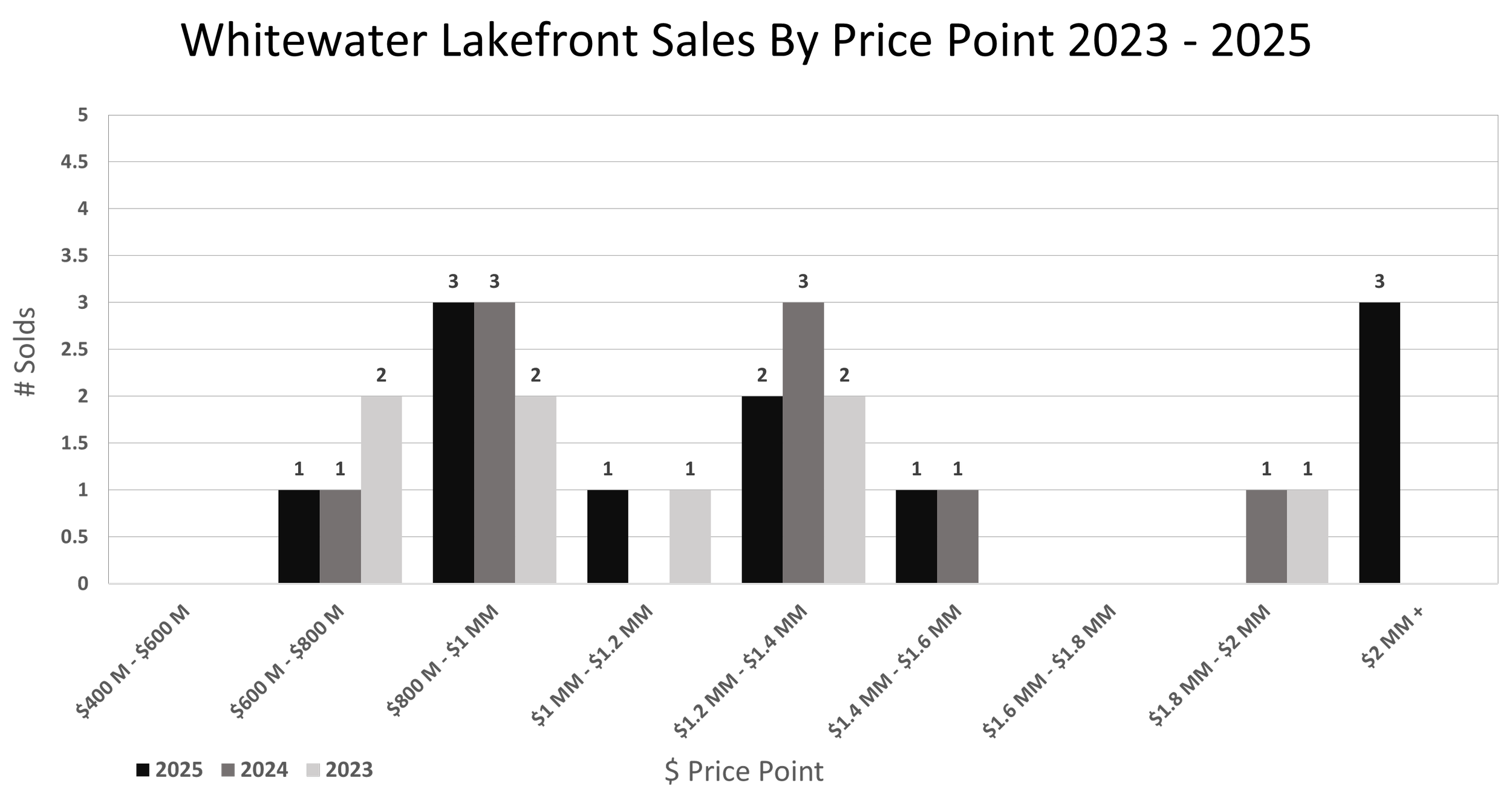 Whitewater Lake 2023 - 2025 Whitewater Lakefront Market Snapshot*MLS SINGLE FAMILY HOMES AND VACANT LAND SALES (EXCLUDES POND FRONTAGE) View fullsize View fullsize View fullsize View fullsize RETURN TO MARKET REPORTS